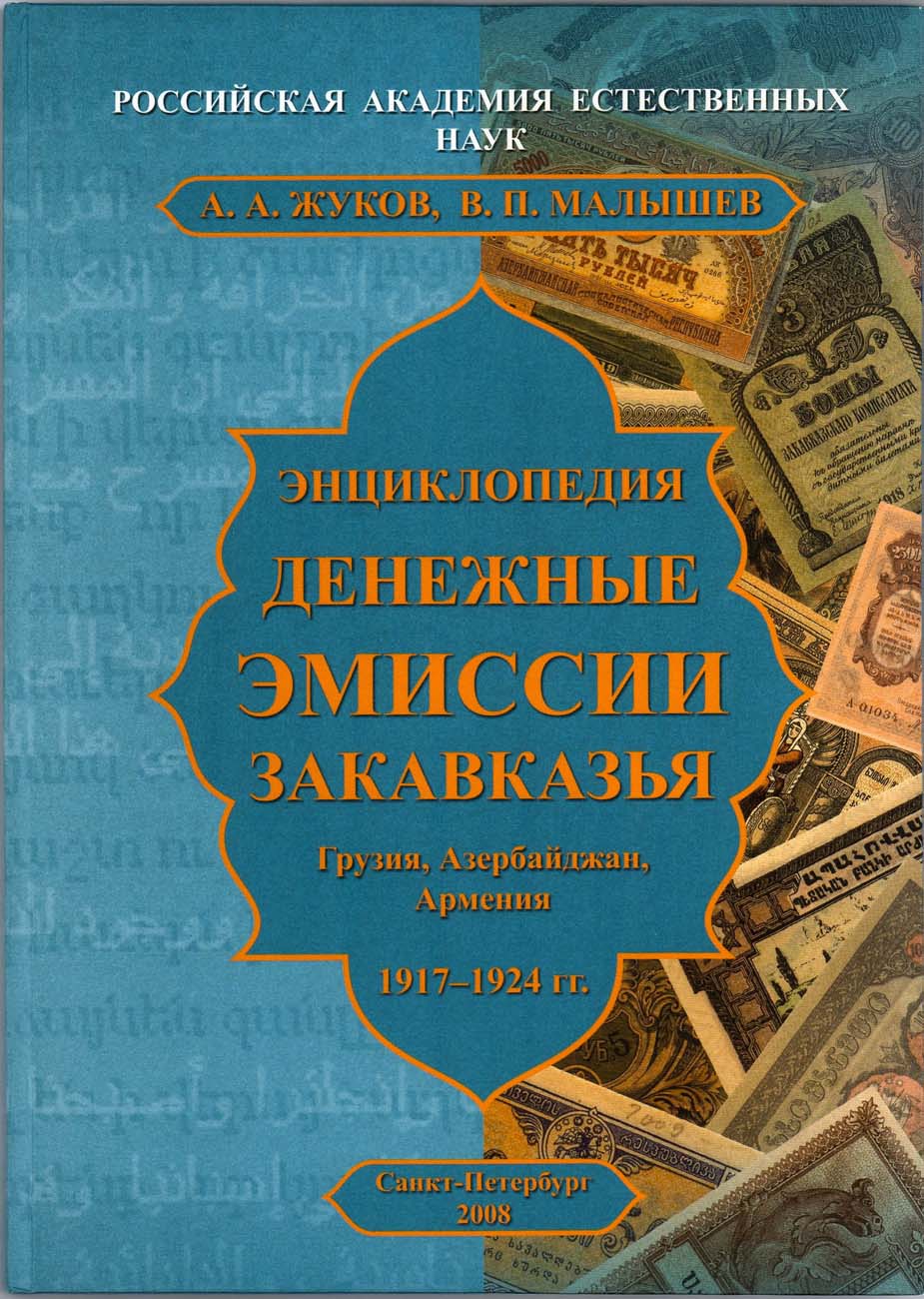 СПБ, 2008 г. Тираж 1000 экз. Книга является продолжением выпущенной авторами в 2005 году "Энциклопедии денежных эмиссий в Средней Азии" и продолжает тему исследования денежного обращения на территории бывшей Российской Империи в период Гражданской войны 1917-1922 гг. и становления Советской власти. В книге приведено более 560 цветных изображений денежных знаков, в том числе свыше 130 частных бон, многие из которых публикуются впервые.
