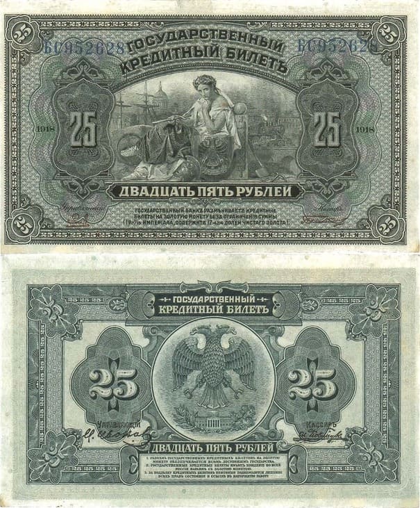 После разгрома Колчака Приморская область стала нейтральной зоной, возникшей в результате достигнутого соглашения между Правительством Дальневосточной Республики японским командованием. В области, куда также входили Сахалин и Камчатка, находились значительные японские силы. В Приморье Областная Земская Управа взяла на себя обязанности Временного Правительства Дальнего Востока. Во Владивостоке находились на значительную сумму государственные кредитные билеты образца 1918 года достоинством в 25 и 100 рублей и разменные билеты в 50 копеек, отпечатанные в США еще по заказу Керенского. По решению Приморской Управы на оборотной стороне кредитных билетов были дополнительно отпечатаны подписи Управляющего делами государственных финансов М.Иванова и кассира И. Ковнацкого. Прежняя дата "1918" не была забита. Эти знаки законом №252 от 5 июня 1920 года были выпущены в обращение и пользовались спросом у населения.