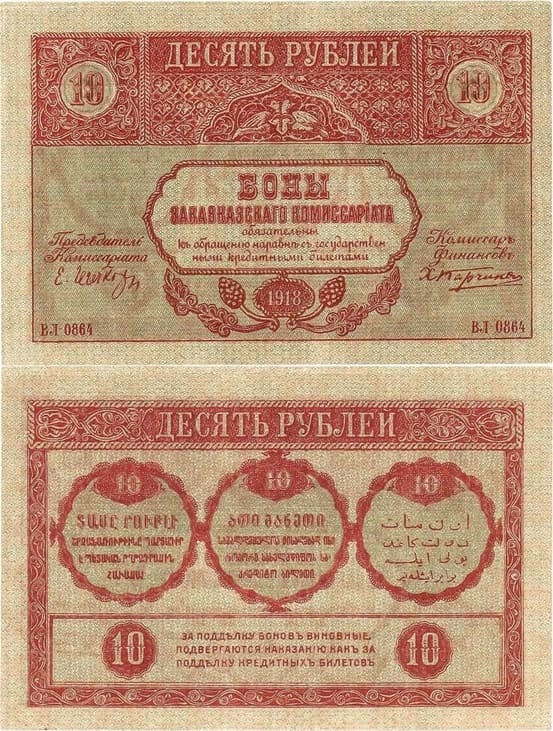 Правительство с названием "Закавказский комиссариат" было образовано 15 ноября 1917 года. Под его юрисдикцию попали все пять губерний Закавказья, председателем был избран Е. Гегечкори. В феврале 1918 года при Комиссариате был создан Закавказский Сейм, наделенный законодательными правами. Но уже в мае 1918 года Сейм сложил с себя полномочия и объявил о распаде Закавказья. Сразу же после этого решения были образованы самостоятельные Грузинская, Азербайджанская и Армянская республики. Боны Закавказского комиссариата выпускались Тифлисской конторой Госбанка с 9 февраля 1918 года по сентябрь 1919 года, хотя сам Комиссариат перестал существовать в мае 1918 года. По мере выпуска Закавказскими республиками своих денежных эмиссий, в период 1919-1924 годов, боны Комиссариата постепенно обменивались на новые республиканские знаки и выходили из обращения.