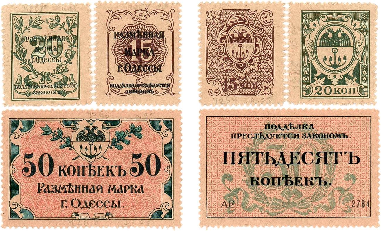 15 копеек 1918 года. Кардаков V.48.5. UNC. 20 копеек 1918 года. Кардаков V.48.6. UNC. 50 копеек 1918 года. Серия АЕ 2784. Кардаков V.48.7. UNC.