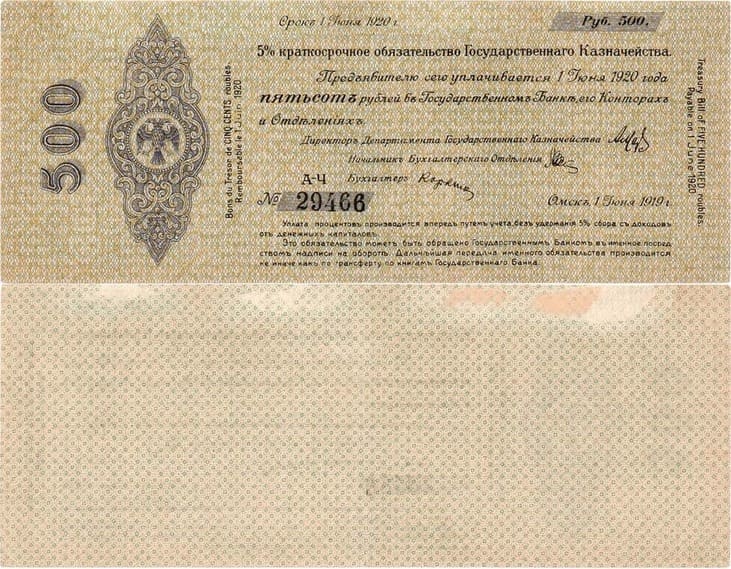 Размер 232х90 мм. Серия АЧ №29466. Срок 1 июня 1920 года. Pick P:S862. Кардаков XI.3.35. XF/AU.