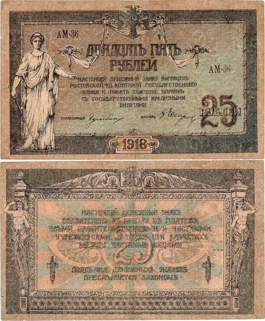 Серия АМ-36. Водяной знак - вензель ГБ. Выпуск Ростов-на-Дону, 1919 год. Рябченко 2970р (2д). Истомин E170.7.1d. XF-.