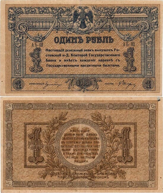 Серия АБ-03. Бумага коричневая. Выпуск Ростов 1919 год. Рябченко №2946р (2д). Истомин E170.3.1a XF.