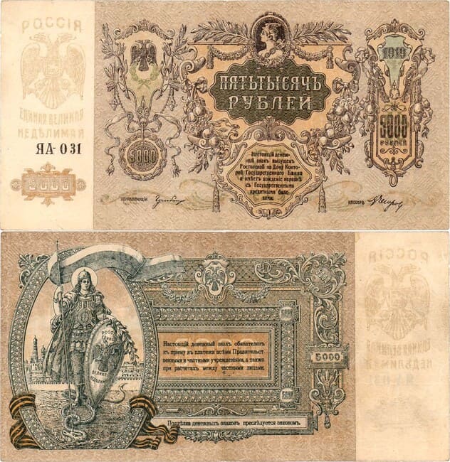 Серия ЯА-031. Водяной знак "мозаика". Феодосия. Выпуск февраль 1920 года. Истомин E170.13.1e. Рябченко 3006р (5д.) AU.