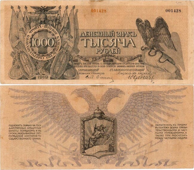 №001428. Генерал от инфантерии Н.Н. Юденич. Кардаков III.4.10. Истомин Е130.10.1. Изготовитель / типография - Сверигес Литографиска Трюкериер (Швеция). VF/XF.
