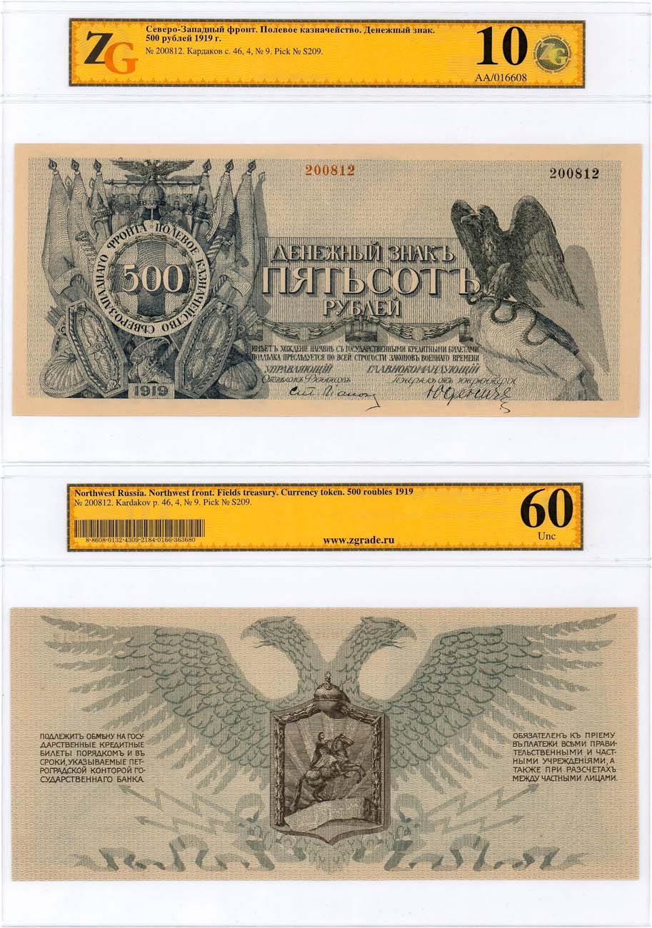 Главнокомандующий - генерал от инфантерии Н.Н. Юденич. Размер 230х100 мм. Без литеры. № 200812. Кардаков III.4.9. Истомин 130.9.1. 60 Unc (10).