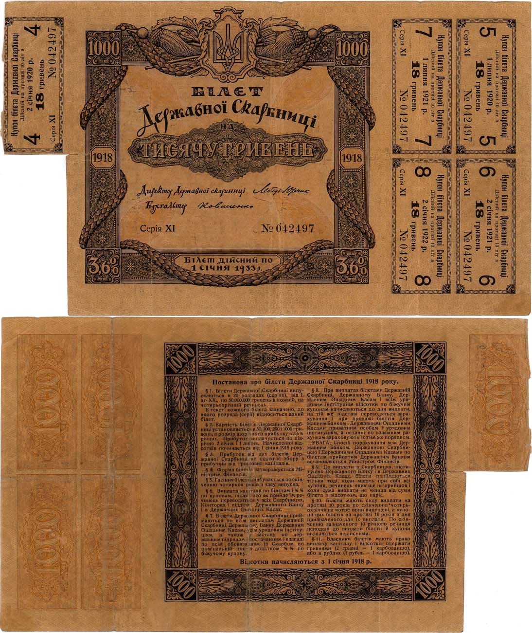 Серия XI, №042497. С 5 купонами. Кардаков 15.1. Истомин 30.12.1a. VF/XF.