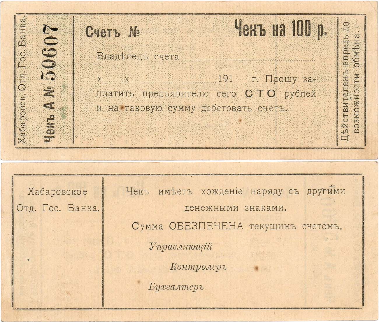 Серия А №50607. Бумага верже с водяными знаками. Чек имеет хождение наряду с другими денежными знаками. Сумма обеспечена текущим счетом. Рябченко 11390. XF/AU.