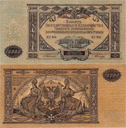 Серия ЯД-096. Выпуск Феодосия 1920 год. Водяной знак - мозаика. Более темный тон аверса и реверса. Кардаков VI.3.20. UNC-/UNC.