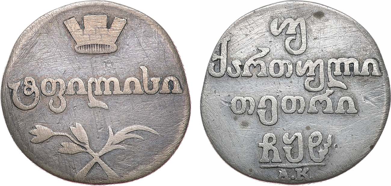 Серебро. 5,72г. Для Грузии. Тифлисский монетный двор. Уздеников 4375. Биткин 729. 1 рубль 50 копеек по Петрову. VF/XF.
