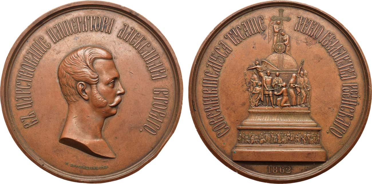 Бронза. 249,51г. Диаметр 86 мм. Санкт-Петербургский монетный двор. Медальер П.Л. Брусницын. Аверс: под изображением Императора "П.БРУСНИЦЫНЪ РѢЗ". Реверс: на обрезе памятника "П. БРУСНИЦЫНЪ Р.". Смирнов 646. Дьяков 707.1(R0). AU.