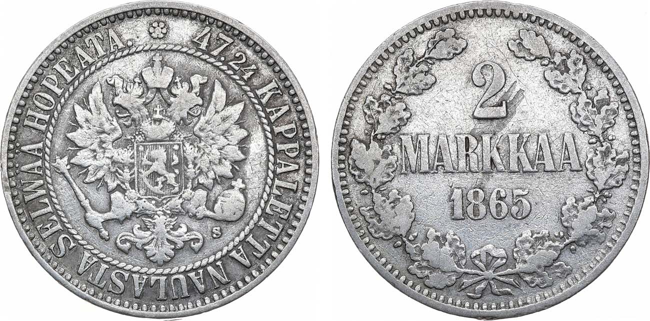 Серебро. 10,27г. Для Финляндии. Гельсингфорсский монетный двор. Уздеников 4657. Биткин 617. VF-.