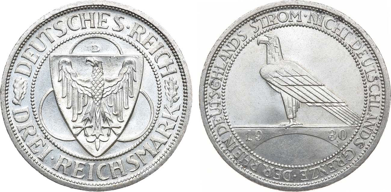 Серебро. 15,02г. Мюнхен (D). Отчеканена в память освобождения Рейнской области (Рейнланда) KM 70. Jaeger 345. Weege 46.. MS 65.