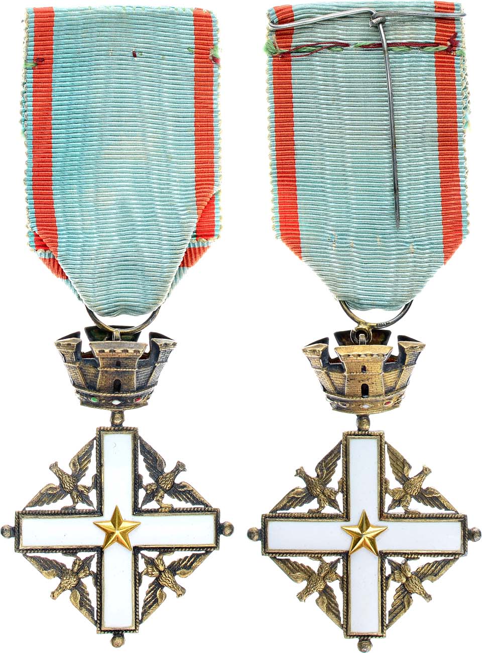 Бронза золочение, эмаль. Размер 60х44 мм. Учреждён законом № 178 от 3 марта 1951 года (вступил в силу с 1952 года). Орден предназначен для награждения за значительные заслуги перед нацией в области литературы, искусства, экономики, благотворительности, общественной и гуманитарной деятельности. Награждаются гражданские и военные государственные служащие за выдающиеся заслуги. Лента: муаровая, состоит из пяти вертикальных полос, зеленого, и красного и цвета (красный и зеленый цвет являются двумя из трех цветов, составляющих государственный флаг Республики Италия). AU/UNC.