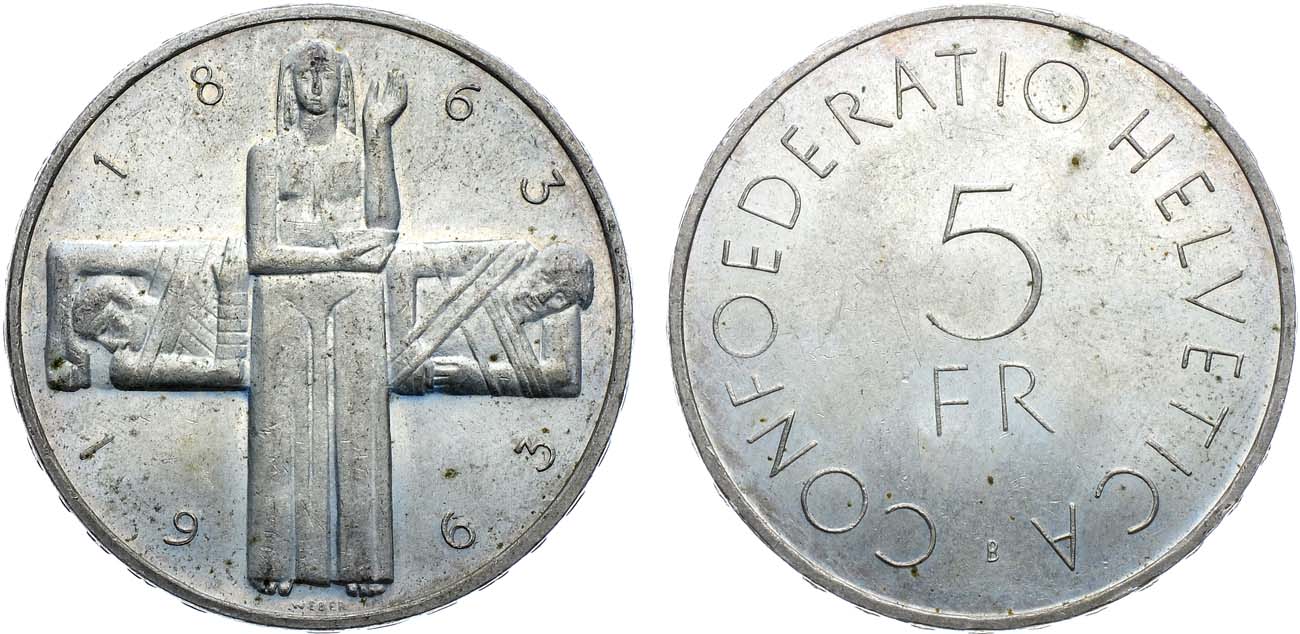 Серебро. 15,03г. Берн (В). Тираж 623000 экз. KM 51. AU/UNC.