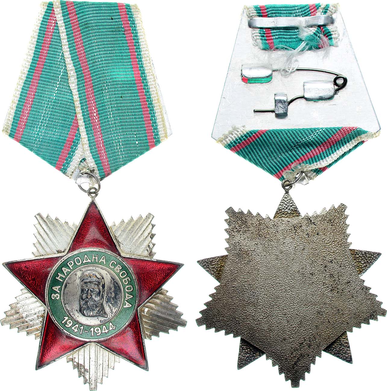 Белый металл, серебрение эмаль. Размер 51х55 мм. Поздний выпуск. На неоригинальной колодке. Оригинальная муаровая лента красного цвета с голубыми полосками. AU.