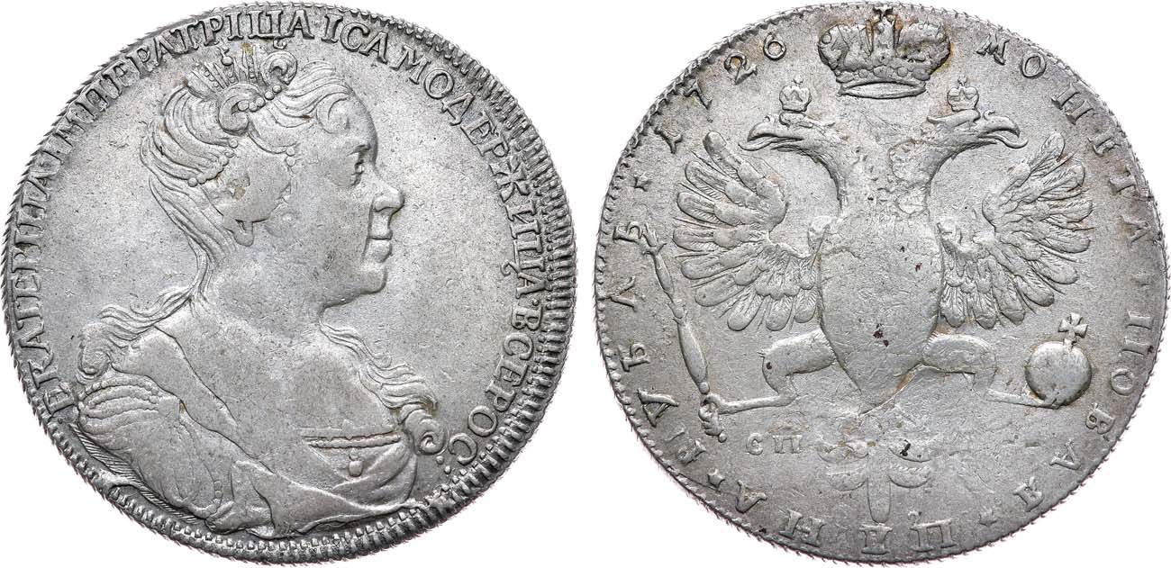 Относится к группе редких типовых рублей, отчеканенных в период правления императрицы Екатерины I.