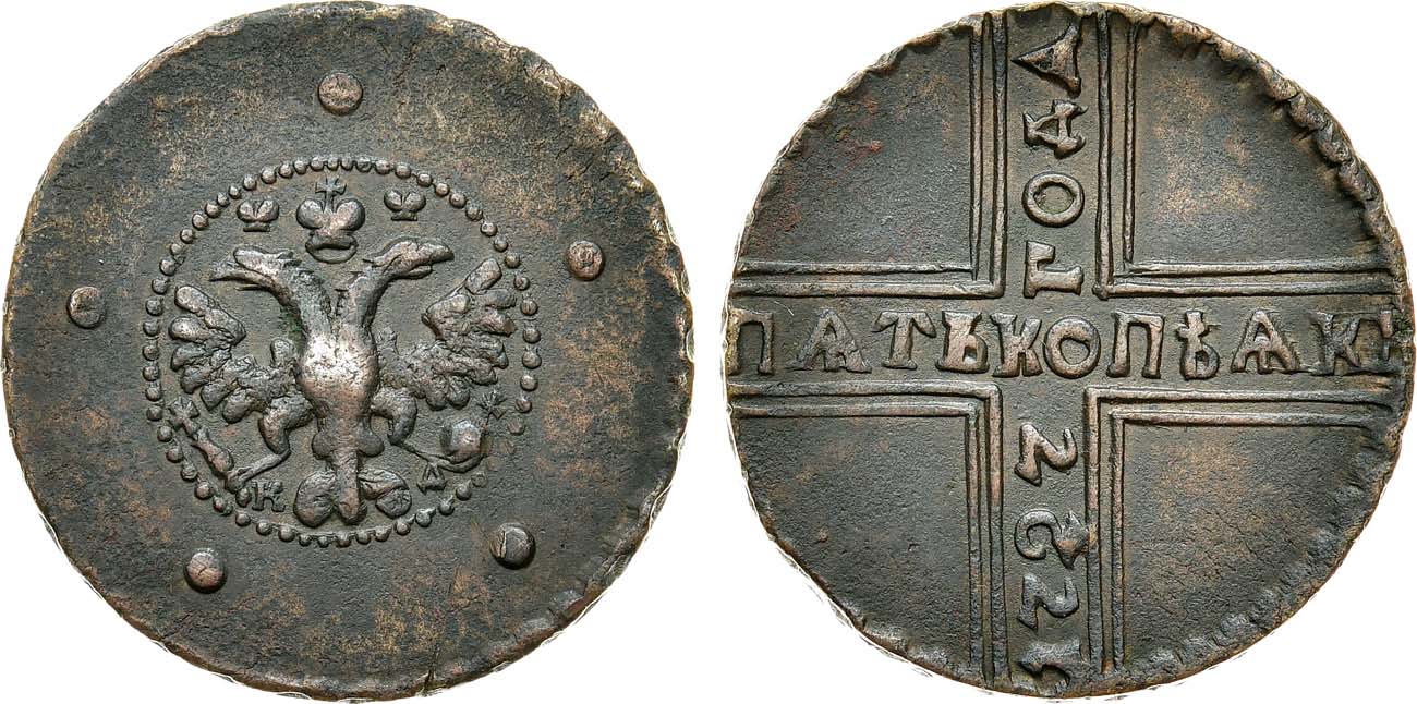 Медь. 19,54г. Красный монетный двор. Аверс: 5 перьев в хвосте орла. Уздеников 2463. Биткин 305. Дьяков 87, 46. Brekke 53, 30. XF+/AU.