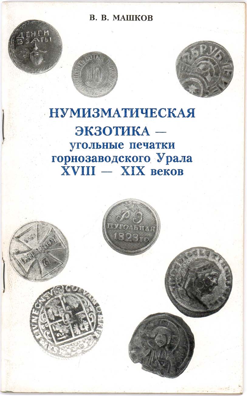Екатеринбург, 1996 г. 46 стр. Тираж 500 экз. В работе впервые в популярной форме приведено описание и классифицированы угольные печатки уральских заводов XVIII-XIX вв.