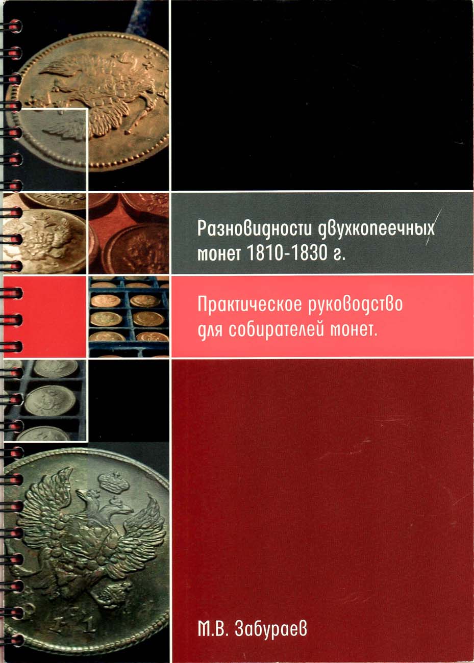 СПБ, 2013 г. 74 стр. В книге описано и изображено 140 разновидностей двухкопеечных монет 1810 -1830 гг. Дана оценка стоимости в 5 состояниях (от VF до MS).