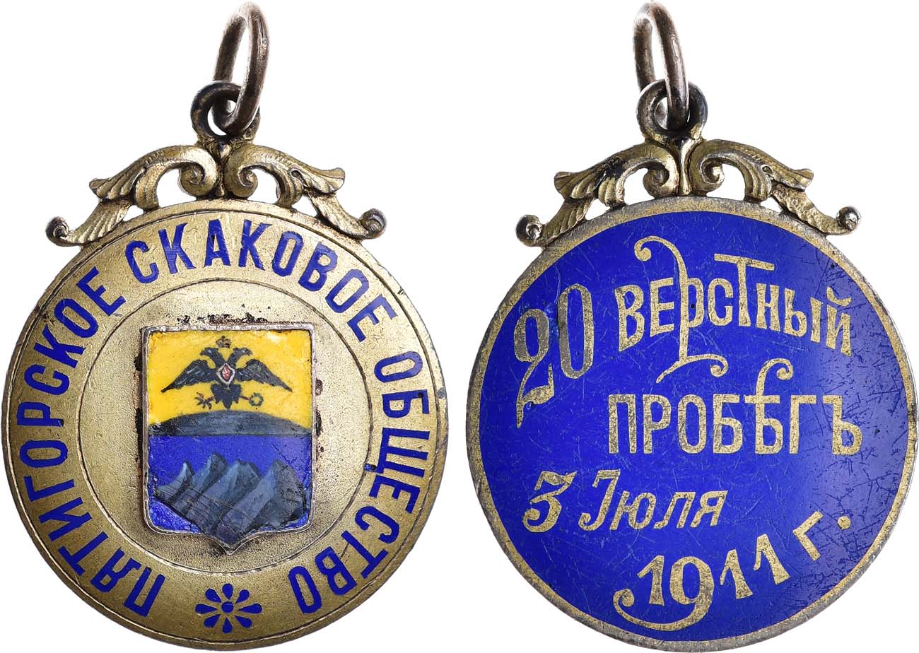 Серебро, золочение, эмаль. 20,78г. Размеры: 35х28 мм. С оригинальным подвесным кольцом. Российская Империя, 1911 год. AU.