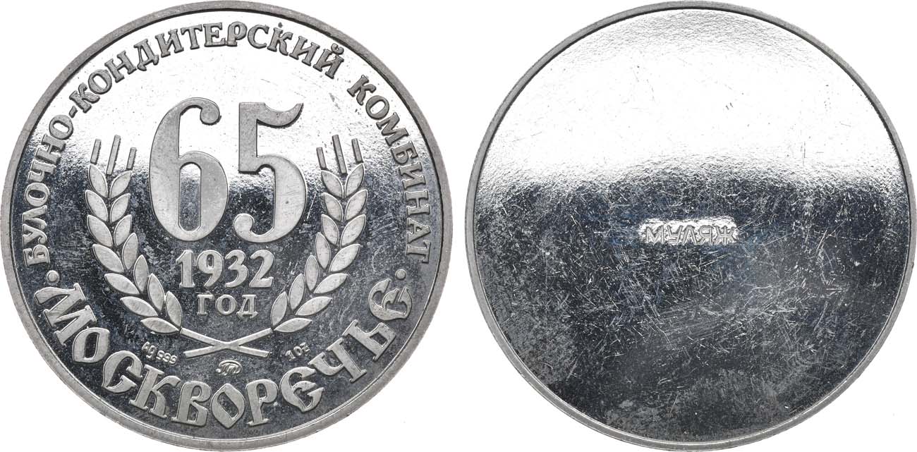 Медно-никелевый сплав. 23,02г. Диаметр 38,5 мм. Московский монетный двор. Аверс: гладкий кружок с выбитой надписью "МУЛЯЖ". Реверс: как у тиражной медали. PROOF.