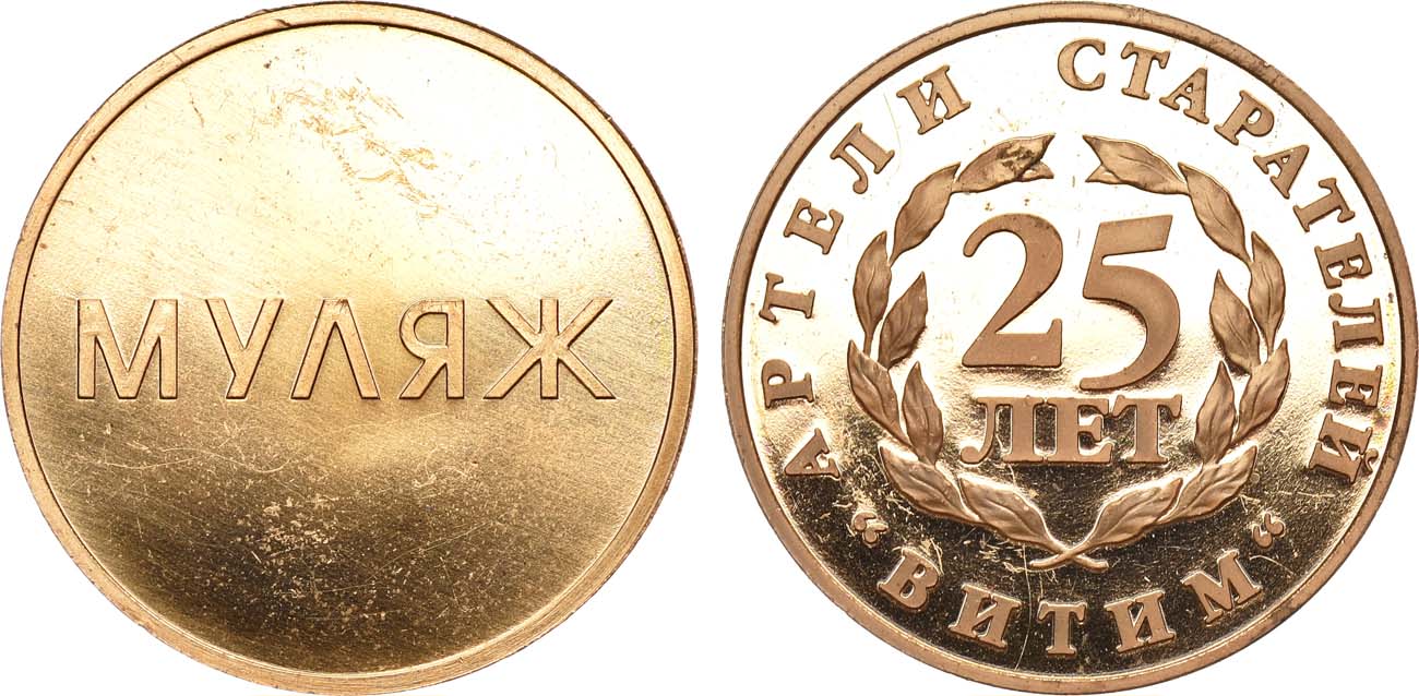 Латунь. 11,6г. Диаметр 30 мм. Московский монетный двор. Аверс: гладкий кружок с надписью "МУЛЯЖ". Реверс: как у тиражной медали. PROOF.