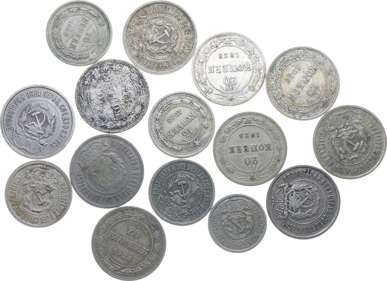 Биллон. 20 копеек 1922 года. Серебро. 3,36 г. Федорин 4. XF-. 20 копеек 1923 года. Серебро. 3,57 г. Федорин 6. XF. 20 копеек 1923 года. Серебро. 3,39 г. Федорин 6. XF-. 20 копеек 1923 года. Серебро. 3,52 г. Федорин 6. XF/AU. 20 копеек 1923 года. Серебро. 3,62 г. Федорин 6. XF/AU. 20 копеек 1923 года. Серебро. 3,47 г. Федорин 6. XF. 20 копеек 1923 года. Серебро. 3,57 г. Федорин 6. XF-. 20 копеек 1923 года. Серебро. 3,46 г. Федорин 6. XF-. 20 копеек 1923 года. Серебро. 3,67 г. Федорин 6. XF-. 20 копеек 1923 года. Серебро. 3,37 г. Федорин 6. F. 15 копеек 1923 года. Серебро. 2.65 г. Федорин 3 (4 у.е.). XF. 15 копеек 1923 года. Серебро. 2.75 г. Федорин 4. XF. 15 копеек 1923 года. Серебро. 2.76 г. Федорин 4. XF-. 15 копеек 1923 года. Серебро. 2.67 г. Федорин 4. VF/XF-. 10 копеек 1923 года. Серебро. 1.75 г. Федорин 3. VF/XF-. VF/AU.