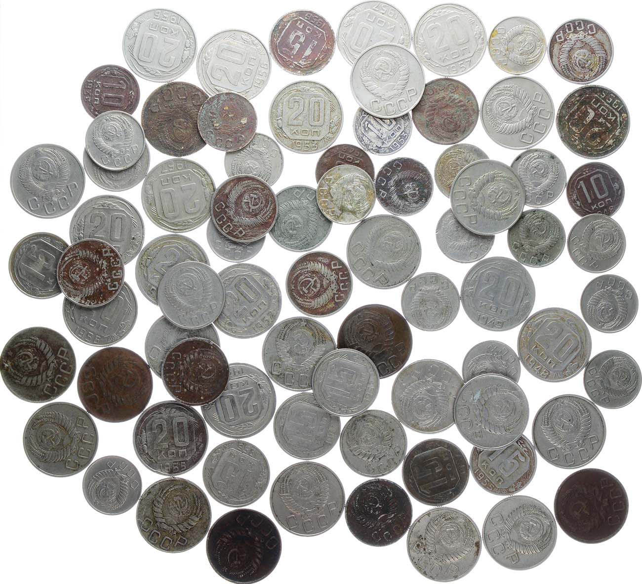 Мельхиор. 20 копеек 1936 года (2 шт.), 1943 года (2 шт.), 1945 года (2 шт.), 1946 года (4 шт.), 1948 годжа (3 шт.), 1949 года, 1951 года, 1952 года (2 шт.), 1953 года (4 шт.), 1954 (2 шт.), 1955 года (6 шт.), 1956 года (3 шт.), 1957 года (4 шт.). 15 копеек 1940 года (2 шт.), 1941 года, 1946 года, 1948 года, 1952 года, 1953 года (2 шт.), 1954 года, 1955 года (2 шт.), 1956 года (3 шт.), 1957 года (4 шт.). 10 копеек 1935 года, 1946 года, 1948 года (3 шт.), 1953 года (2 шт.), 1954 года (2 шт.), 1955 года, 1956 года, 1957 года (10 шт.). F/AU.