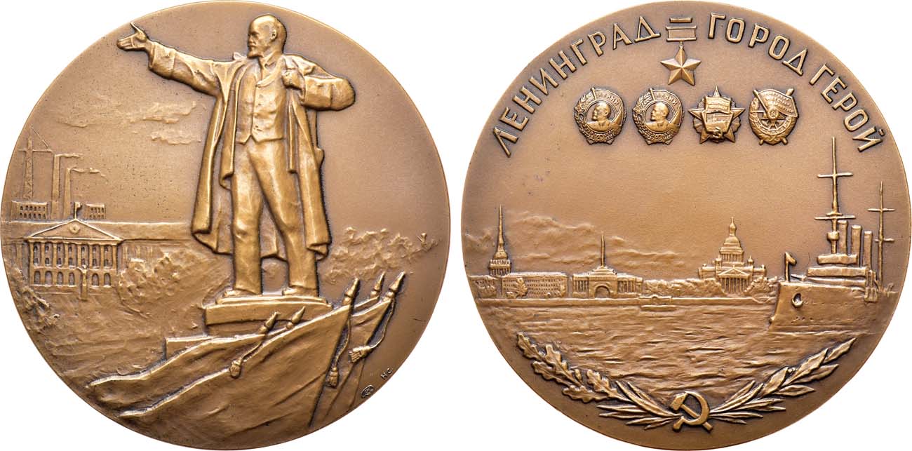 Томпак. 148,49г. Диаметр 65 мм. Ленинградский монетный двор. Медальер Н. Соколов (на реверсе на 4 часа "Н.С."). Шкурко, Салыков 637. UNC.