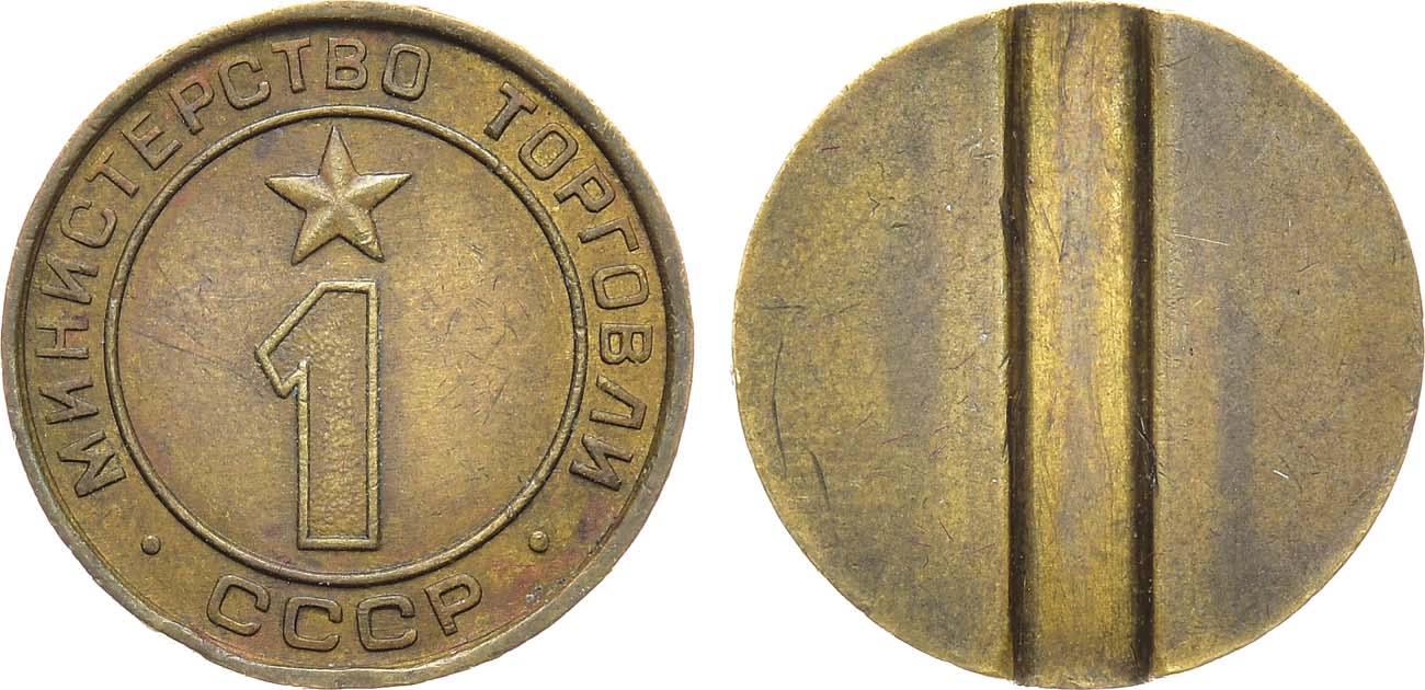 Жетон для обслуживания торговых автоматов, столовых ресторанов и кафе Министерства торговли СССР 1955-1977 года.