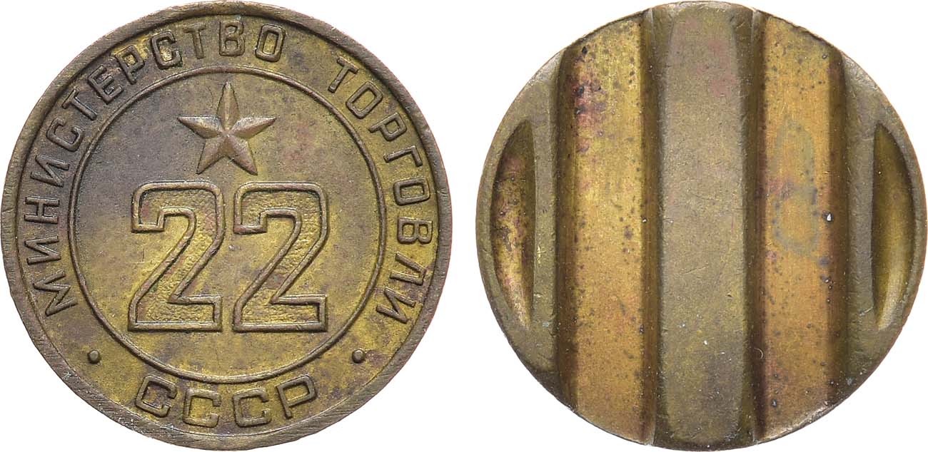 Жетон для обслуживания торговых автоматов, столовых ресторанов и кафе Министерства торговли СССР 1955-1977 года.
