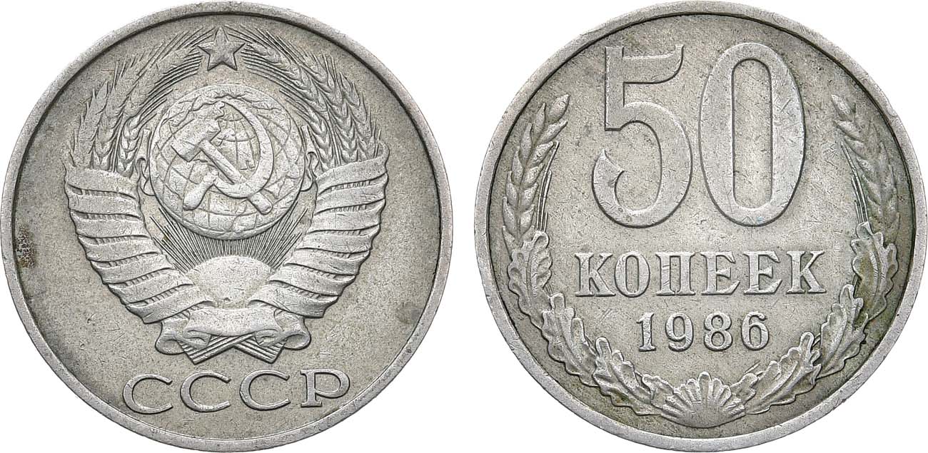 Медно-никелевый сплав. 4,45г. Ошибочно датированная гуртовая надпись: «50 КОПЕЕК 1985». ФедоринVI 54 (200 у.е.). XF+/AU.