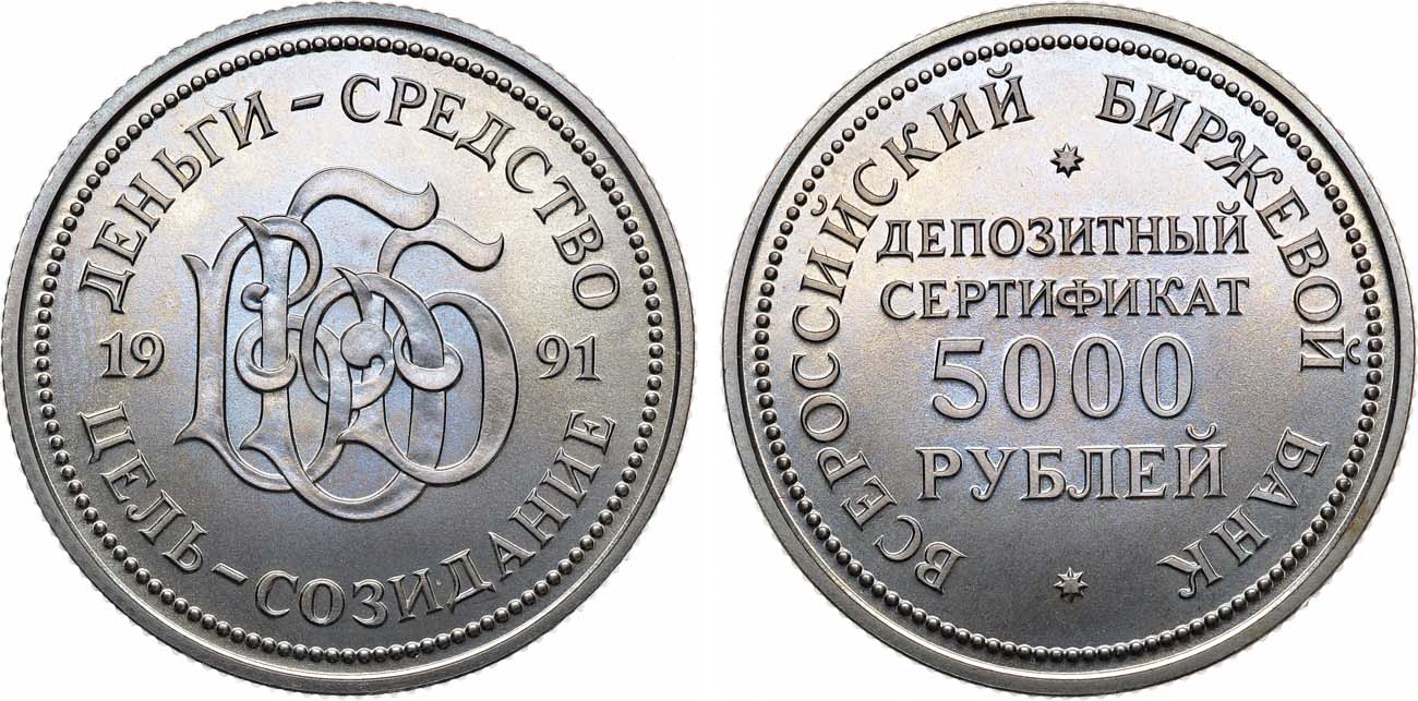 Монетовидный сертификат находился в реальном денежном обращении и был обязан к приему Российским Биржевым Банком по номинальной стоимости до 30.12.1996 года и двойной номинальной стоимости с 31.12.1996 года. Продажа сертификата также осуществлялась по нумизматической стоимости. Газета «Куранты», № 213 (228), от 12 ноября 1991 года.