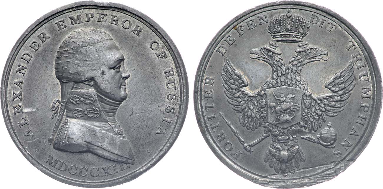 Свинцово-оловянный сплав. 31,23г. Диаметр 45 мм. Великобритания, Лондонский королевский монетный двор. Медальер Т. Майон (на аверсе под портретом "W T F"). Аверс: дата римскими цифрами. Дьяков 363.1. AU/UNC.
