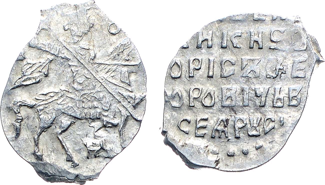 Серебро. 0,68г. Монетный двор Москвы. Реверс: по бокам от всадника "Б|О", под всадником "о/М". ГКХ2 169. UNC.