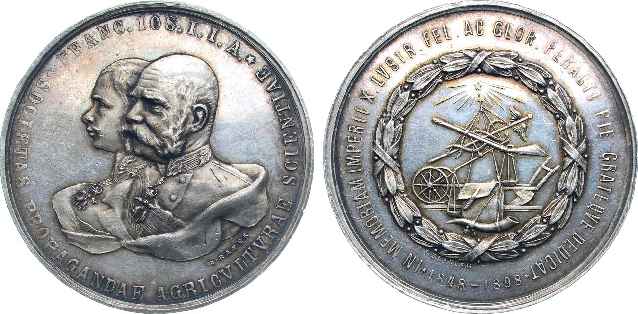 Серебро. 20,43г. Диаметр 41 мм. Медальеры: аверс Батек (внизу под бюстом императора "R. BATEK"), реверс Цимблер (внизу под венком "J. ZIMBLER") Hauser 962. AU.