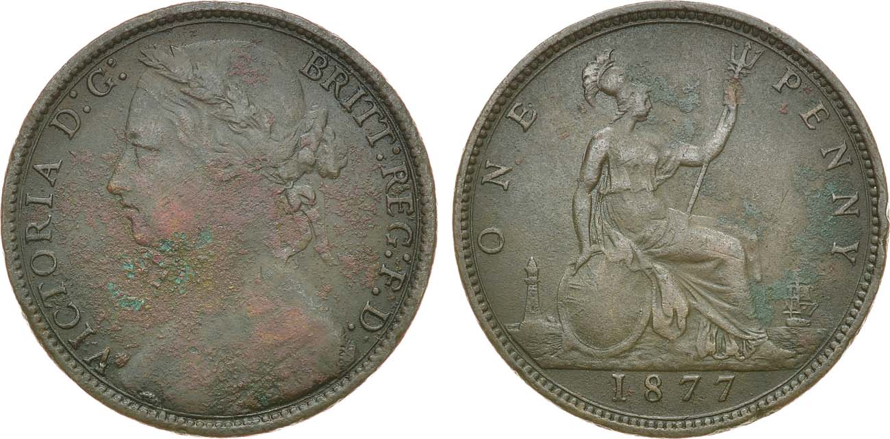 Бронза. 9,1г. Лондон. KM 755, Spink 3954. VF+/XF.