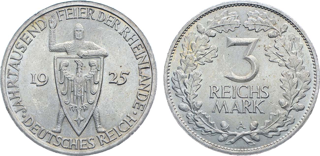 Серебро. 15,05г. Берлин (А). Отчеканена в память 1000-летия Рейнской области (Рейнланда) KM 46. Jaeger 321. Weege 24. UNC.