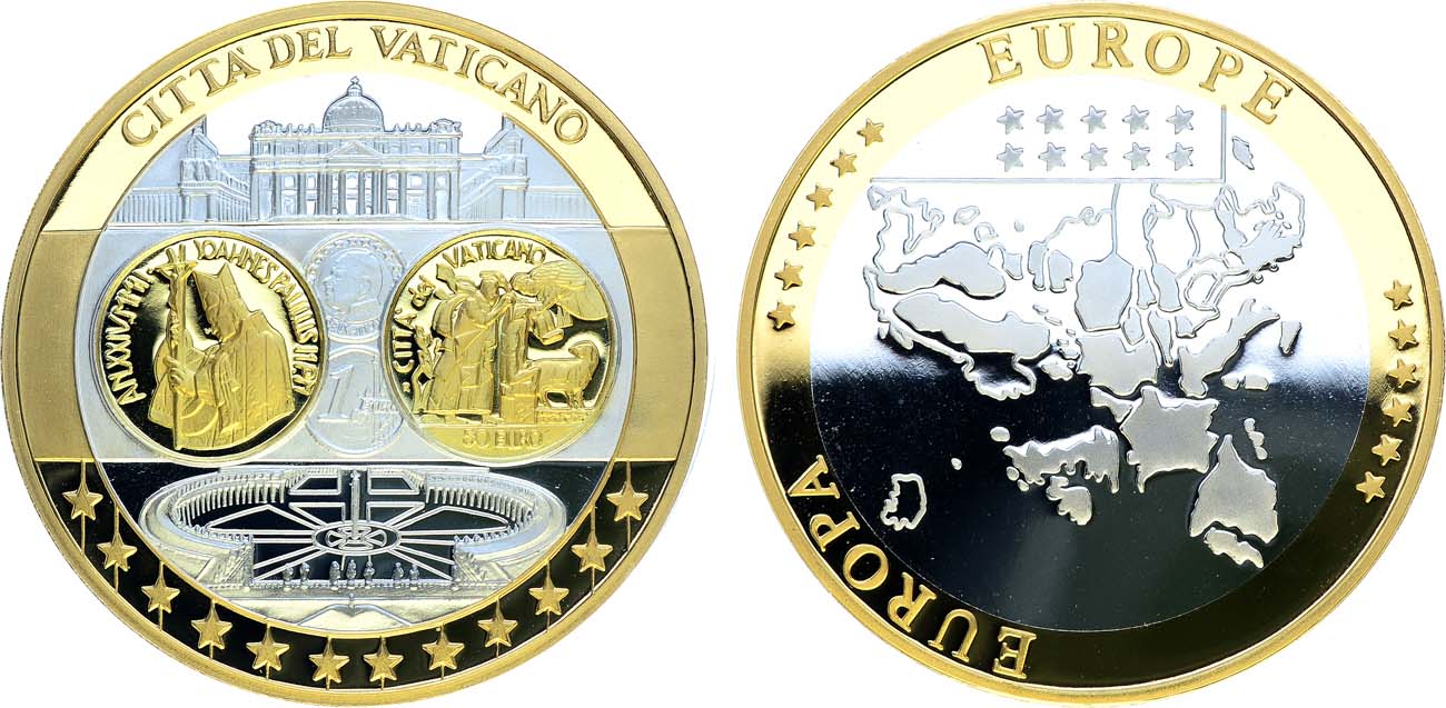 Медь, серебрение, золочение. 20г. Диаметр 40 мм. Без обозначения монетного двора. PROOF.