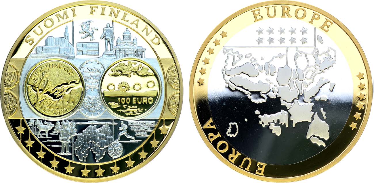 Медь, серебрение, золочение. 20г. Диаметр 40 мм. Без обозначения монетного двора. PROOF.