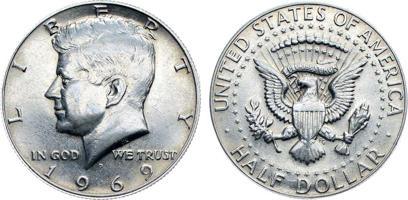 Серебро. 11,51г. Денвер (D). Проба 400. KM 202a. AU.