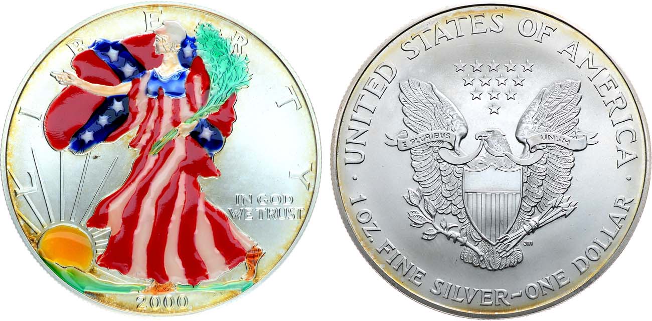 Серебро. 31,1г. Филадельфия. Цветная эмаль. KM 273. UNC.