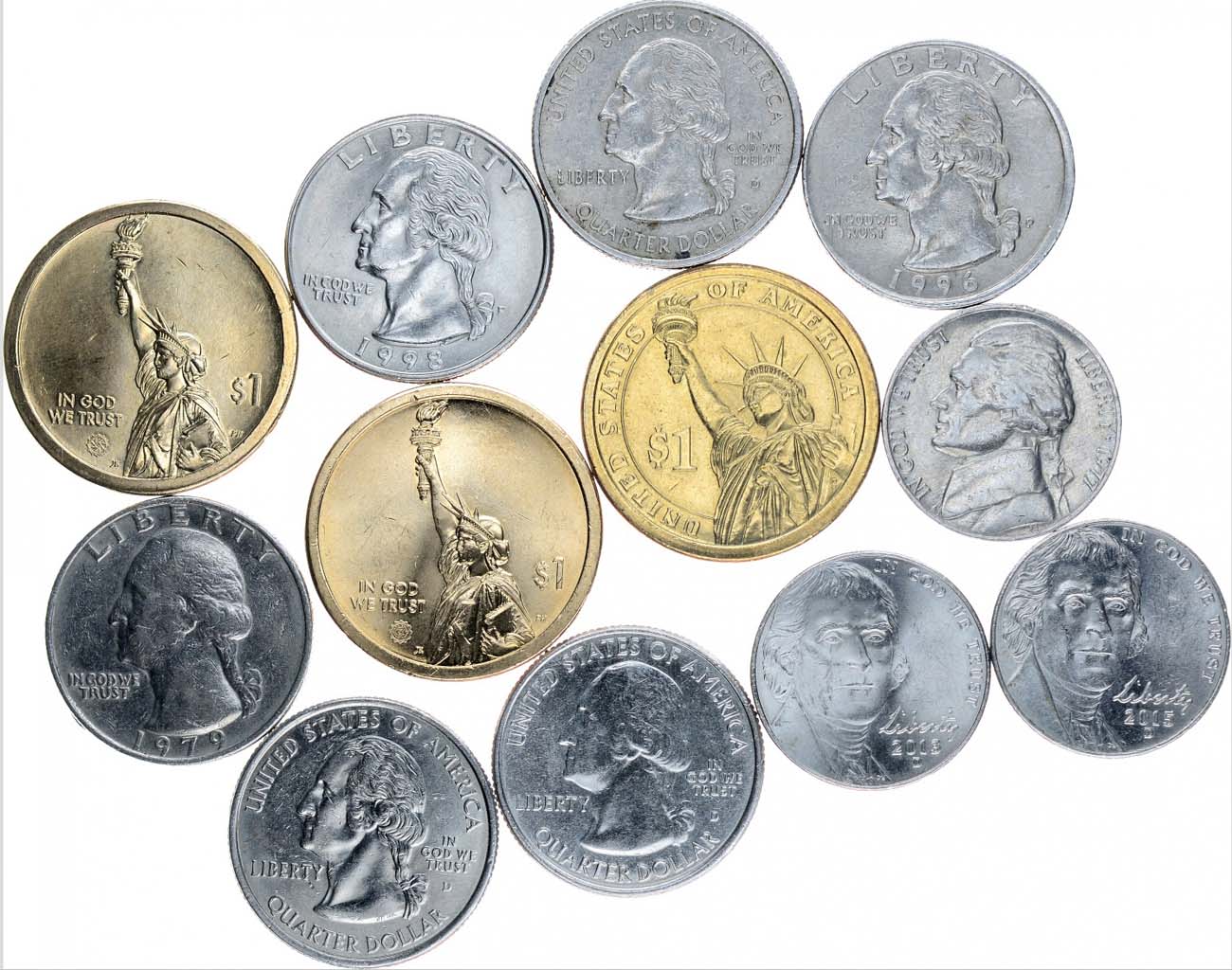 1 доллар 2021 года. Медь с марганцево-латунным покрытием. 8,04 г. Филадельфия (Р). Виргиния. Мост-тоннель через Чесапикский залив. KM UC# 131. UNC. 1 доллар 2019 года. Медь с марганцево-латунным покрытием. 8,04 г. Филадельфия (Р). Джорджия. Сад попечителей. KM UC# 114. UNC. 1 доллар 2007 года. Медь с марганцево-латунным покрытием. 8,0 г. Филадельфия (Р). Президент США - Джордж Вашингтон (1789-1797). KM 401. UNC. 25 центов (квотер) 1996 года. Медь с медно-никелевым покрытием. 5,65 г. Филадельфия (Р). KM 164a. XF. 25 центов (квотер) 1998 года. Медь с медно-никелевым покрытием. 5,65 г. Филадельфия (Р). KM 164a. AU. 25 центов (квотер) 1979 года. Медь с медно-никелевым покрытием. 5,53. Филадельфия. KM 164a. XF. 25 центов (квотер) 2016 года. Медь с медно-никелевым покрытием. 5,71 г. Денвер (D). Национальный парк Теодор-Рузвельт. KM 648. AU. 25 центов (квотер) 2003 года. Медь с медно-никелевым покрытием. 5.64 г. Денвер (D). Квотер штата Мэн. КМ 345. XF/AU. 25 центов (квотер) 1999 года. Медь с медно-никелевым покрытием. 5.62 г. Денвер (D). Квотер штата Джорджия. КМ 296. XF. 5 центов 2015 года. Медно-никелевый сплав. 4,96 г. Денвер (D). KM 381. AU. 5 центов 2013 года. Медно-никелевый сплав. 4,95 г. Денвер (D). KM 381. UNC. 5 центов 1977 года. Медно-никелевый сплав. 5 г. Филадельфия. KM A192. AU. XF/UNC.
