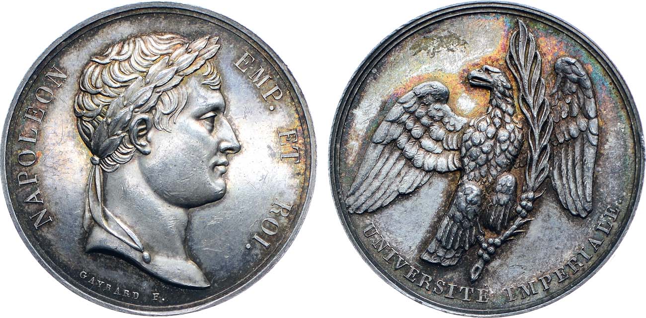 Серебро. 19,11г. Диаметр 32 мм. Парижский монетный двор. Медальер Раймон Гайрар (на аверсе под бюстом императора "GAYRARD•F"). Реверс: Летящий орёл с распростёртыми крыльями, держащий в лапах пальмовую ветвь. Bram. 716. UNC.