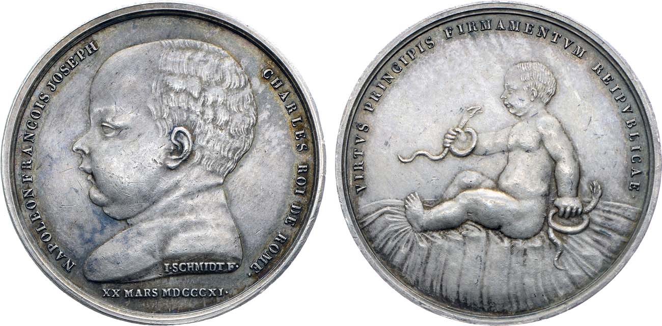 Серебро. 39,13г. Диаметр 41 мм. Парижский монетный двор. Медальер И. Шмидт (на аверсе в обрезе портрета "I SCHMIDT F."). Клейма на гурте: рог изобилия и "ARGENT". Bramsen 1108. AU/UNC.