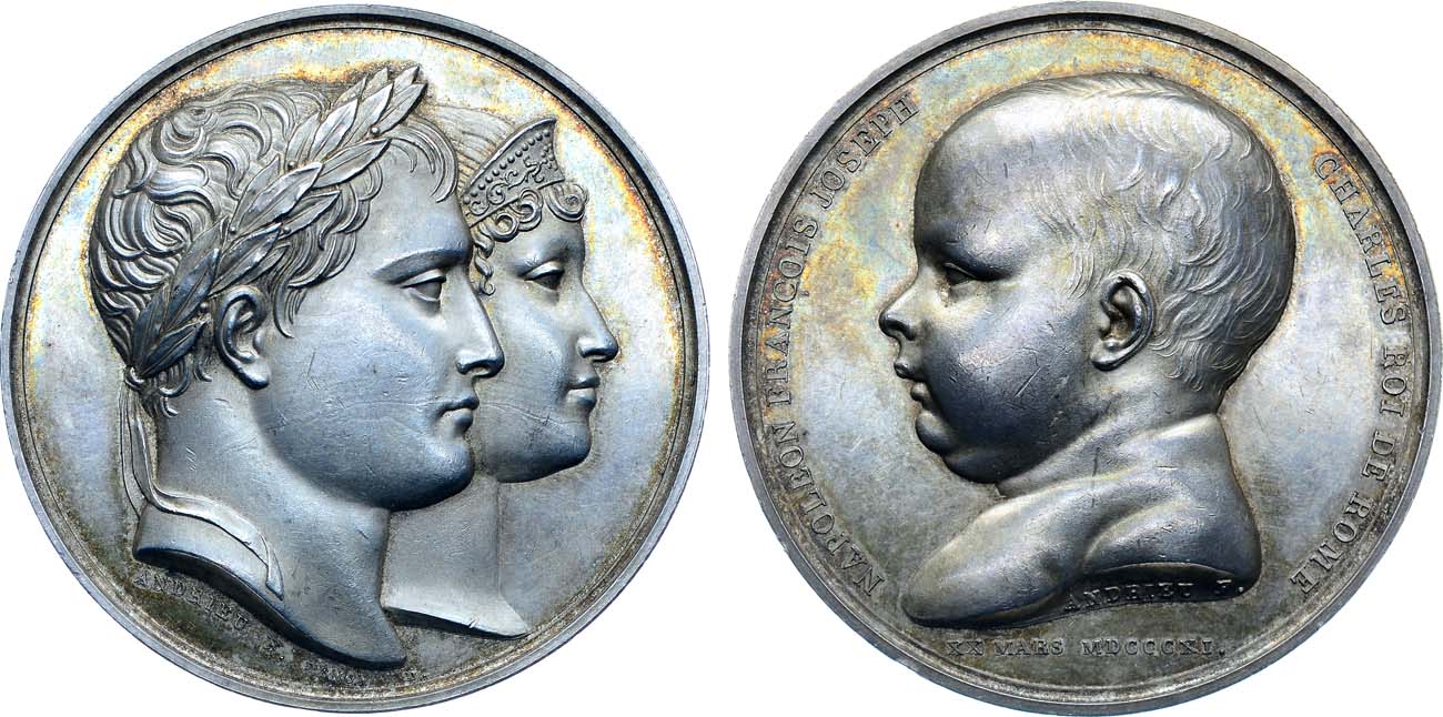 Серебро. 41,65г. Диаметр 40,5 мм. Парижский монетный двор. Медальер Б. Андриё (на аверс под обрезом бюста, на реверсе в обрезе бюста "ANDRIEU F."). Bramsen 1100. UNC.