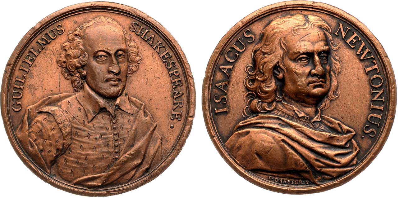 Возможно, медаль изготовлена из аверсов двух медалей: в честь У. Шекспира и И. Ньютона. Лот продаётся как есть, без возможности возврата.