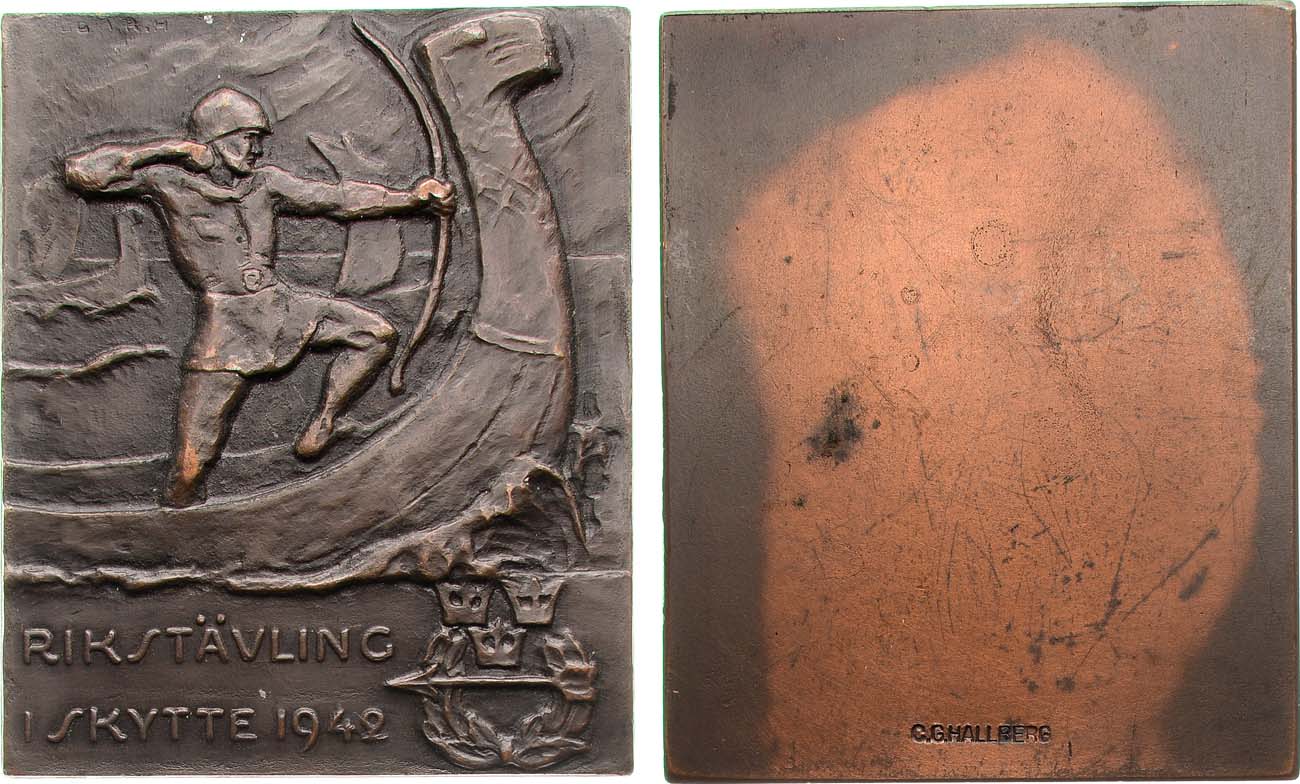Бронза. 44,91г. Размеры 47х57 мм. Стокгольм. Мастерская Карла Густава Халлберга (на реверсе внизу "C.G. HALLBERG"). AU.