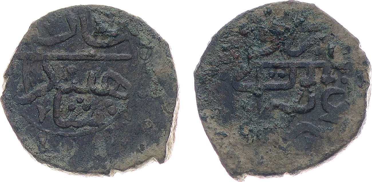Биллон. 1,52г. Бахчисарайский монетный двор. Аверс: "хан-хин гирей-ша". Реверс: тамга в центре, линия соединена с тамгой. Гурт гладкий. Сариев 183. AU/UNC.